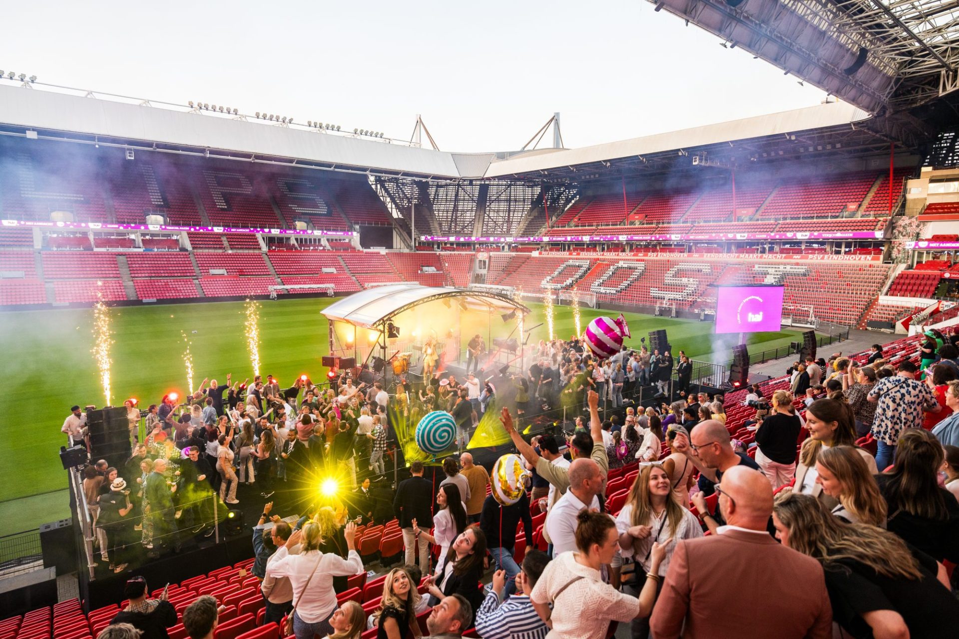 Een meeting of event in het Philips Stadion betekent een unieke beleving op Champions League-niveau. Met sfeervolle ruimtes in de basis. Verrassende culinaire concepten tijdens de rust. En optimale service in de spits. Alles volledig afgestemd op wie jij bent en wat je wil. De eindstand? Onbezorgd genieten op een inspirerende plek. En bouwen aan prestaties op topniveau.