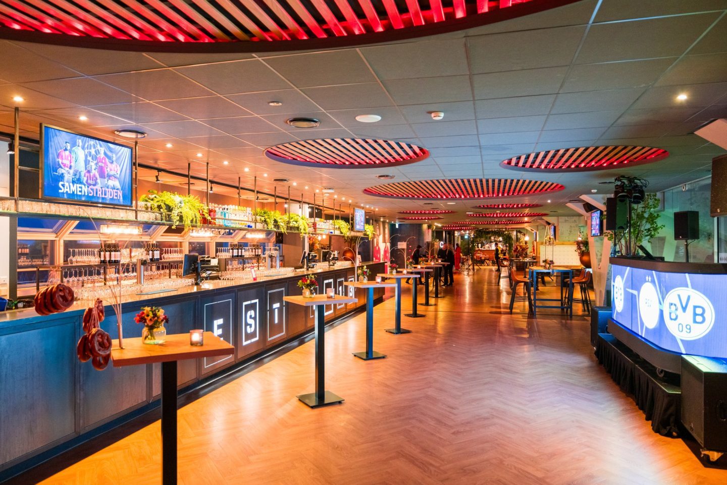 In deze hippe ruimte op de vierde verdieping krijgen borrels, feesten of diners de allure van een kampioenschap! Met een hippe bar, mogelijkheden voor livemuziek, een privégarderobe en eigen toiletten genieten je gasten van onvergetelijke en ongedwongen momenten. Inclusief een uniek uitzicht op het veld, dat alleen maar mooier wordt als de avond valt.